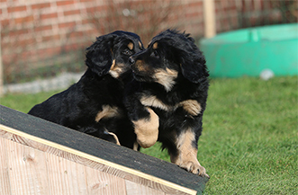 Es ist eine wahre Freude die Kleinen im großen Welpengarten zu beobachten. Sie sind unerschrocken und neugierig und alle Welpenspielgeräte werden sofort und ausdauernd in Beschlag genommen. Sei es die Hängebrücke, der 4-Fach-Tunnel, das Wackelbrett, das Hamsterrad.... alles wird ordentlich genutzt und sind sie mal müde, so schlafen sie sehr gerne auf der überdachten Terrasse oder unter der Hängebrücke und verarbeiten dort ihre Erlebnisse in wilden Träumen.
