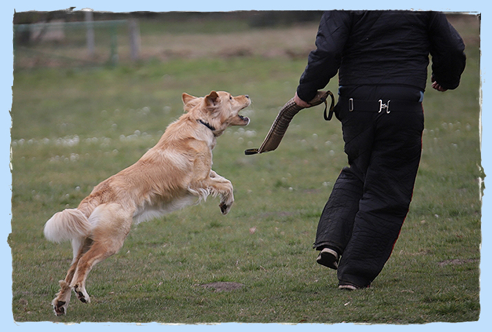 Am meisten hat mir allerdings das Spielen mit Meike und dem Schutzdiensthelfer Detlef Döring Spaß gemacht. Da konnte ich so richtig Dampf ablassen und der Richter meinte, dass ich einen sehr ausgeprägten Beutetrieb und einen schnellen, festen Griff habe. Ist das gut?! Frauchen meinte ja und sie ist auch megamäßig stolz auf mich.... und ich finde zurecht.